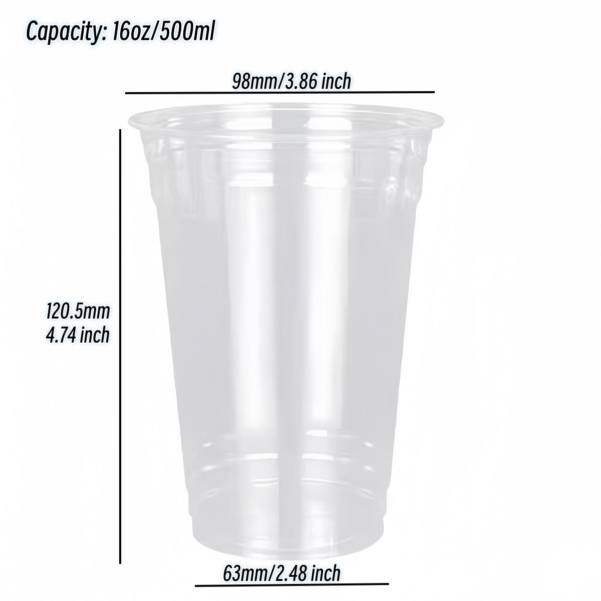 This 16oz Clear PET Plastic Drink Cup pack includes 1000 high-quality clear plastic cups made from BPA-free PET plastic, ensuring your beverages are safe and healthy. They are perfect for juices, iced coffee, milkshakes, iced tea, smoothies, and more, making every sip refreshing and delicious.With a transparent design, these cups allow easy viewing of the contents, enhancing the appeal of your beverages. Durable and break-resistant, they are ideal for takeout and on-the-go use, making them perfect for coffee shops, bubble tea shops, juice bars, and family gatherings. Each cup is eco-friendly, recyclable, and helps reduce waste.