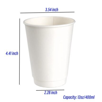 Coffee Cup-12oz Disposable Double Wall Paper Coffee Cups Eco-Friendly Recyclable Hot Drink Cups for Coffee Shops Office Takeout
