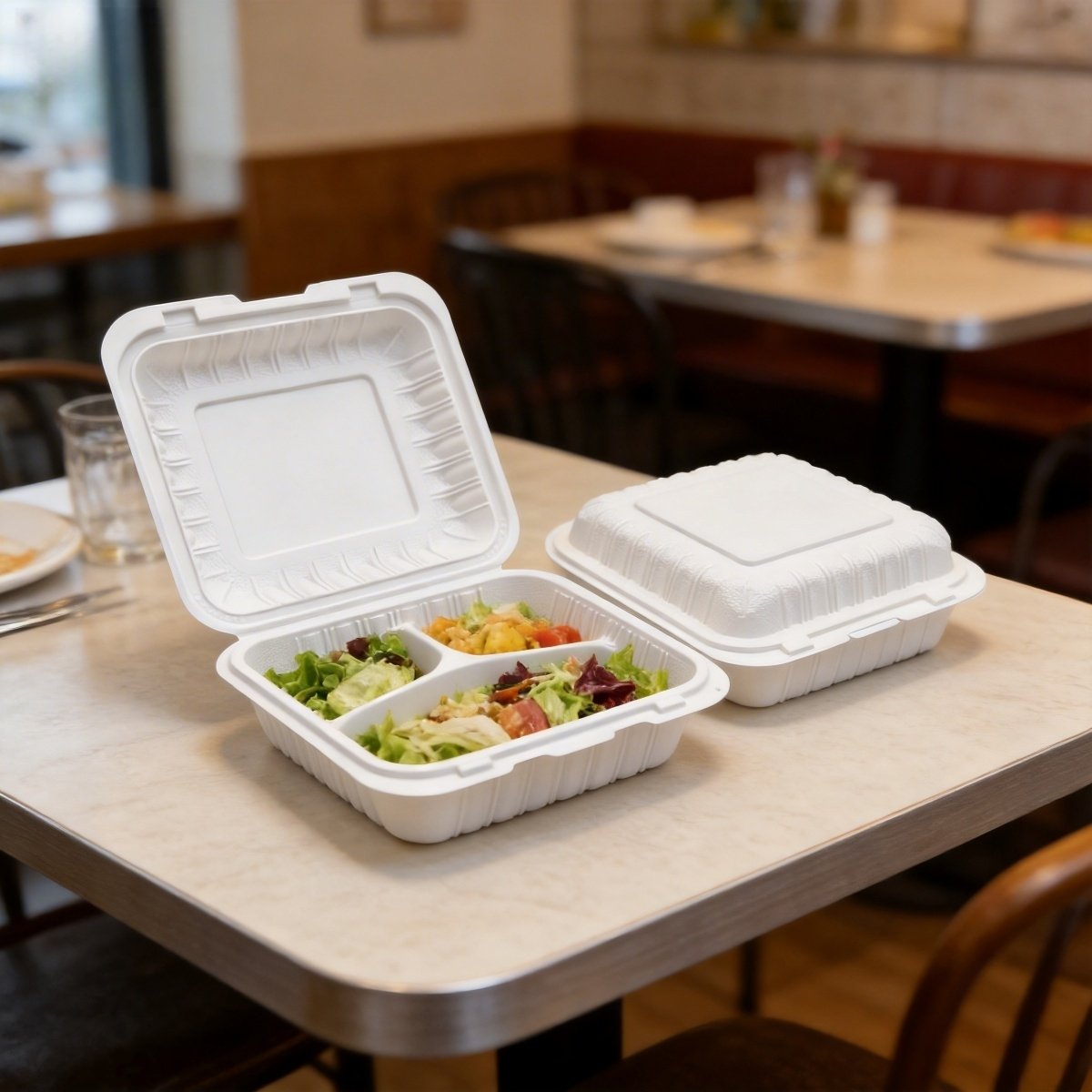 • These to-go Clamshells can be used for hot or cold food Items. It offers reliable strength and does not contain any plastic or wax Lining. These containers are Microwaveable.