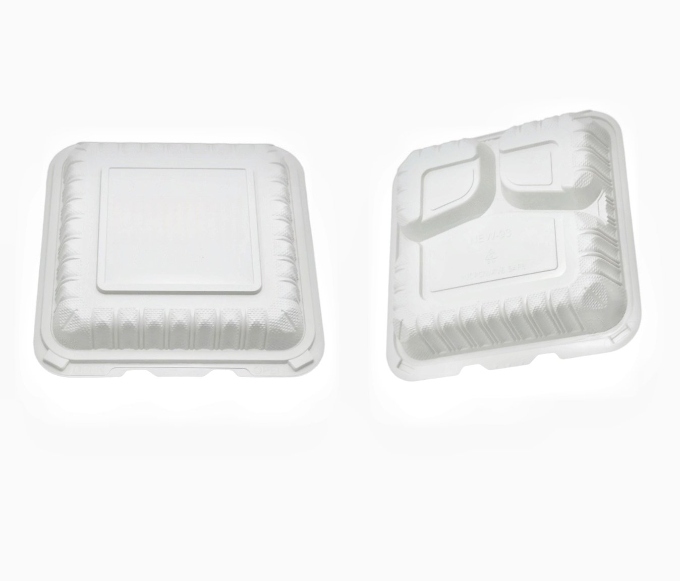 • Convenient Dining Tools: The 3 compartments 9 x 9inch clamshell trays are made of durable polypropylene and calcium carbonate, the clamshell trays are durable and sturdy making transportation a breeze. Our secure clamshell containers lock in freshness, keeping your food delectable and undamaged